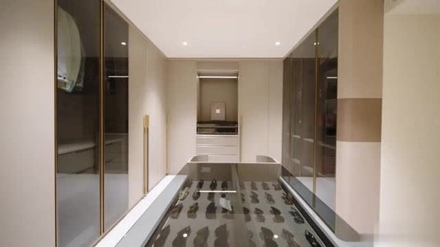之后便是衣帽间的地方,整体很气派,也很整齐干净,半透明的玻璃门,不仅防止内部的衣物饰品落灰,整体看上去还非常的整洁,一看就令人无比的舒服~