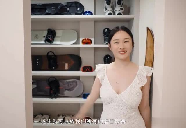 因为他们全家都喜欢滑雪,所以衣帽间还有一个空间是专门用来放滑雪滑雪服和所需的装备。